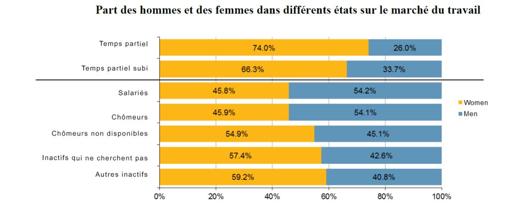Part des hommes et des femmes dans les différents états sur les marchés du travail